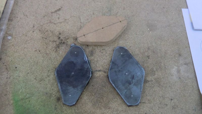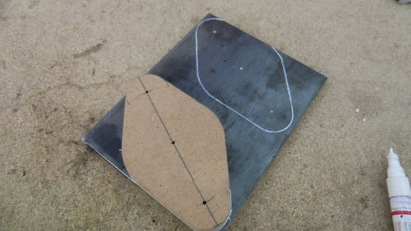 Use a template to get the right shape. Use it to draw the shape of the two required flanges on one of the metal pieces. Punch the location of the three holes.