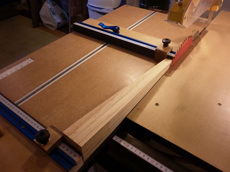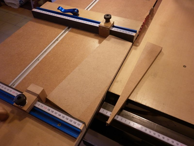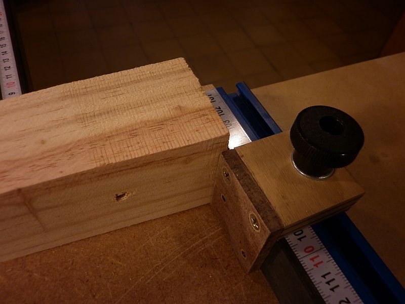 The nearer stop (head) has block screwed on to be able to capture the workpiece set at a higher angle.