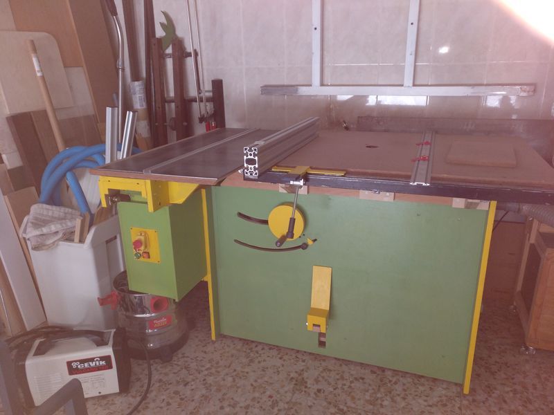 Miguel lives in Spain and has a small shop in his garage. Using his old commercial table saw he was able to slowly build a Format Table Saw. There are some details he plans to add shortly, but so far the new machine became already operational.