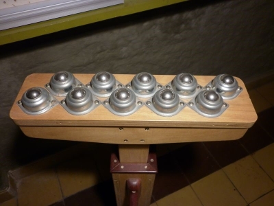 Here is a view of the outfeed head. The transfer balls have been staggered to obtain maximum continuous support.