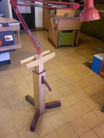 Its construction is very simple but really sturdy. Just follow the single page Multi-use_Stand.pdf drawing we include here. You will want to use heavy wood for the three legs as this provides a firm base and a low center of gravity making it difficult to topple accidentally.