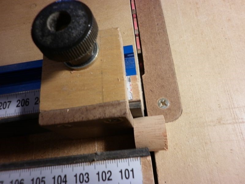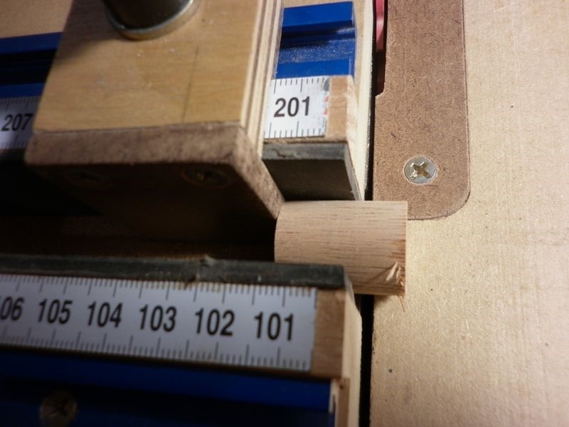 Readjusting the stop after each cut I obtained the desired discs. Notice how such a small piece can be firmly held and cut.
