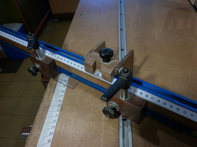 There is also an (adjustable) double angular scale for angled cuts with the fence installed at the far or the near end.