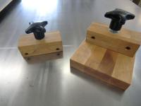 This simple hold-down is built around a drill press hold-down supplied by http://www.justclamps.com/driipress_clamp.htm. You may find it also in Amazon, Woodcraft, etc.The original has a ring nut to attach it to the drill press table. You may discard it and screw the post directly into a slightly smaller hole in a plywood base. The post has two flats for a wrench and will cut its own threa... [read more...] | |